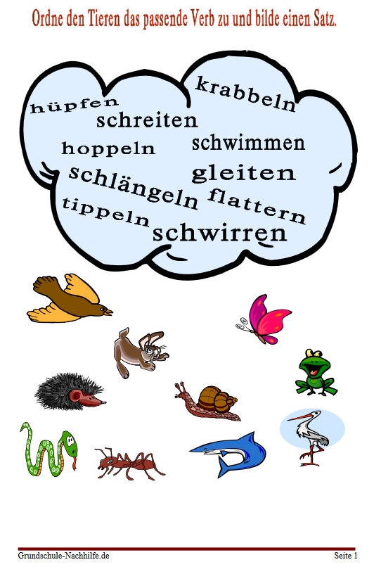 • Arbeitsblatt Nachhilfe Deutsch Klasse 2 Sätze bilden “Im Reich der Tiere“