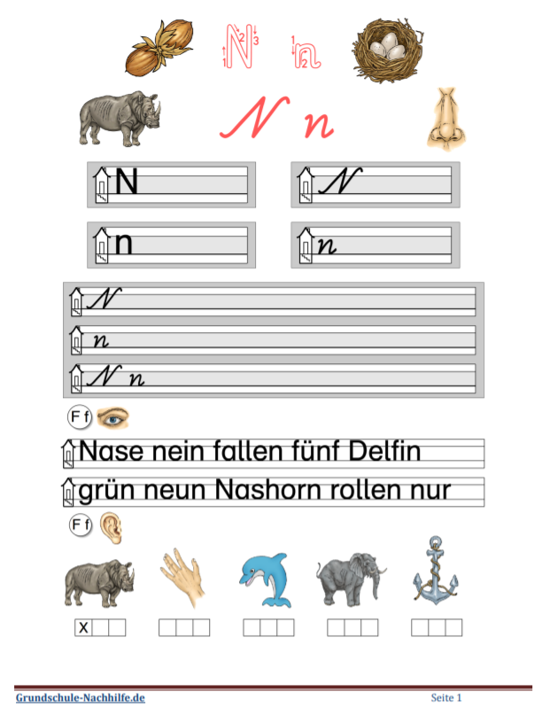 • Arbeitsblatt Nachhilfe Deutsch Schreibbuchstabe N,n
