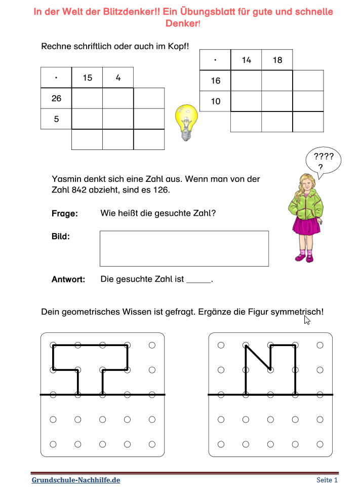 Einfaches Rechnen von Malaufgaben mit zweistelligen Faktoren und etwas Fachwissen rundet das erste Arbeitsblatt etwas ab. Probiere dich aus!