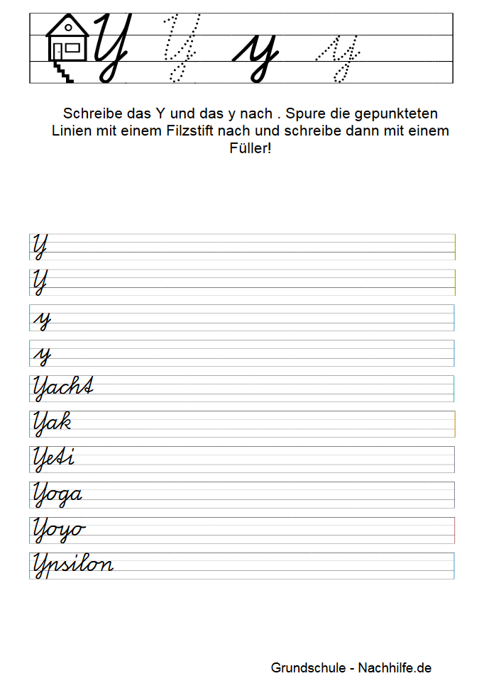 In der weiteren Reihenfolge des Alphabets schreiben wir heute in Schreibschrift das Y, y.