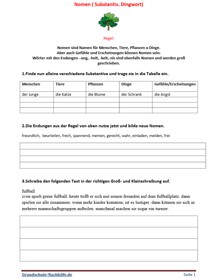 Überprüfe noch einmal dein Wissen über die Substantive und über die Groß- und Kleinschreibung in Sätzen. Verändere Verben und Adjektive und bilde daraus neue Substantive aus der Wortfamilie.