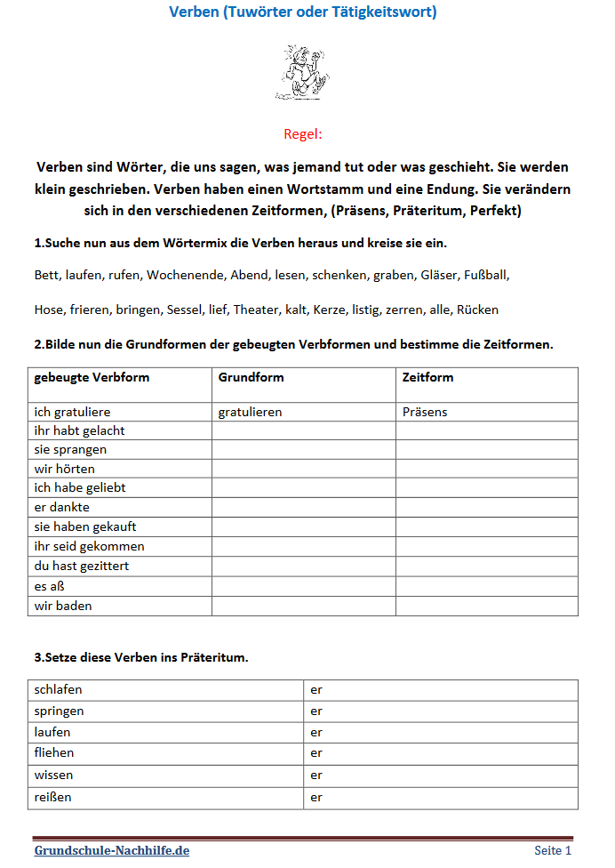 Rund um die Wortart Verb! Verben erkennen und in die verschiedenen Zeitformen setzen. Wichtiges grammatikalisches Grundwissen kannst du noch einmal festigen.