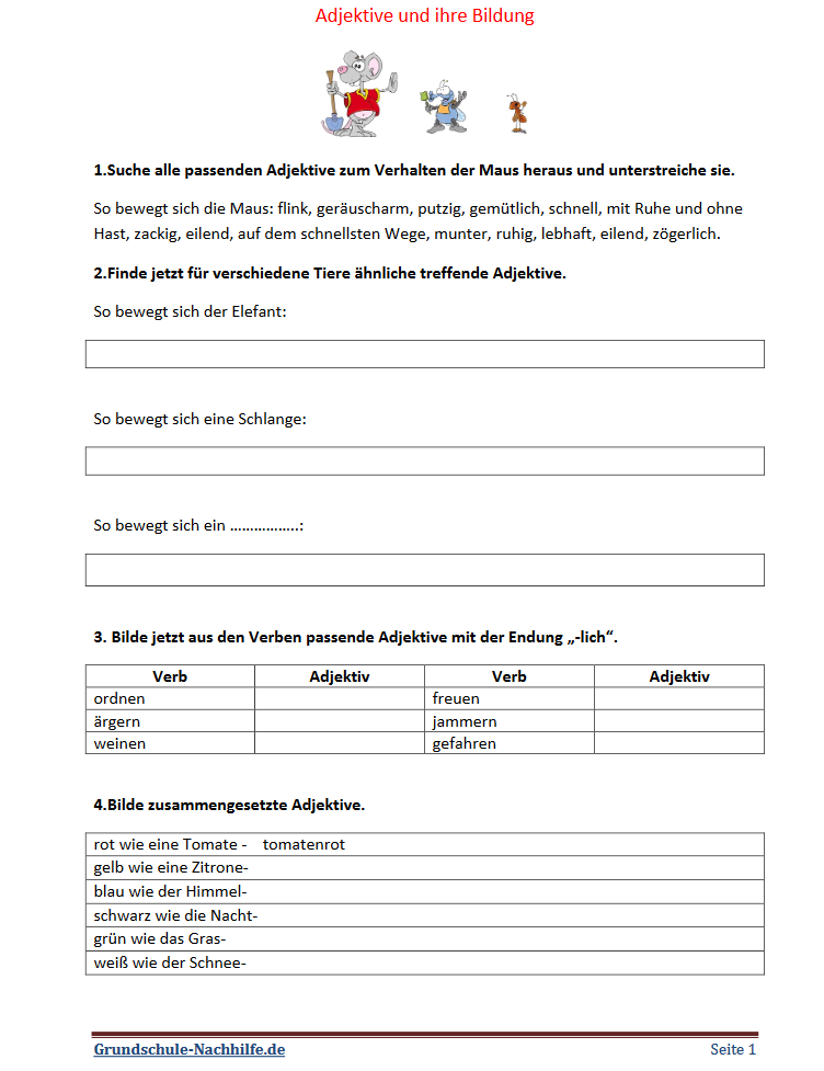 Heute geht es rund um das Adjektiv- passende Adjektive finden, Verben zu Adjektiven verändern und aus Adjektiven zusammengesetzte Adjektive finden.