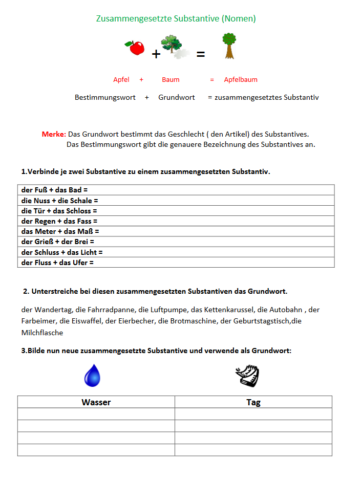 Das Grund- und Bestimmungswort muss immer bei den zusammengesetzten Substantiven herausgefunden werden. Grammatikalisches Grundwissen ist gefragt. Hier kannst du es einfach noch einmal üben und mit Wörtern experimentieren.