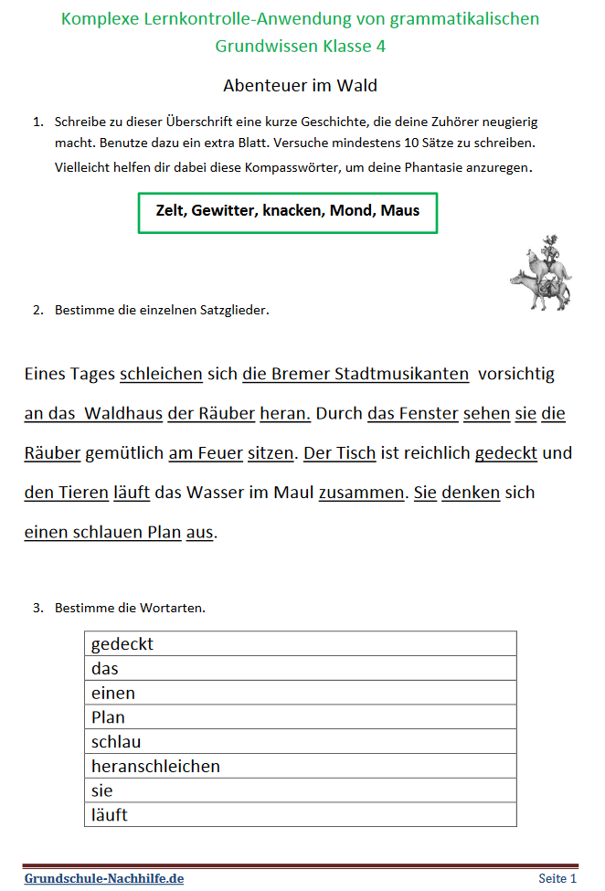 Arbeitsblatt Deutsch Klasse 4,5 Grammatikalische Grundwissen üben und festigen