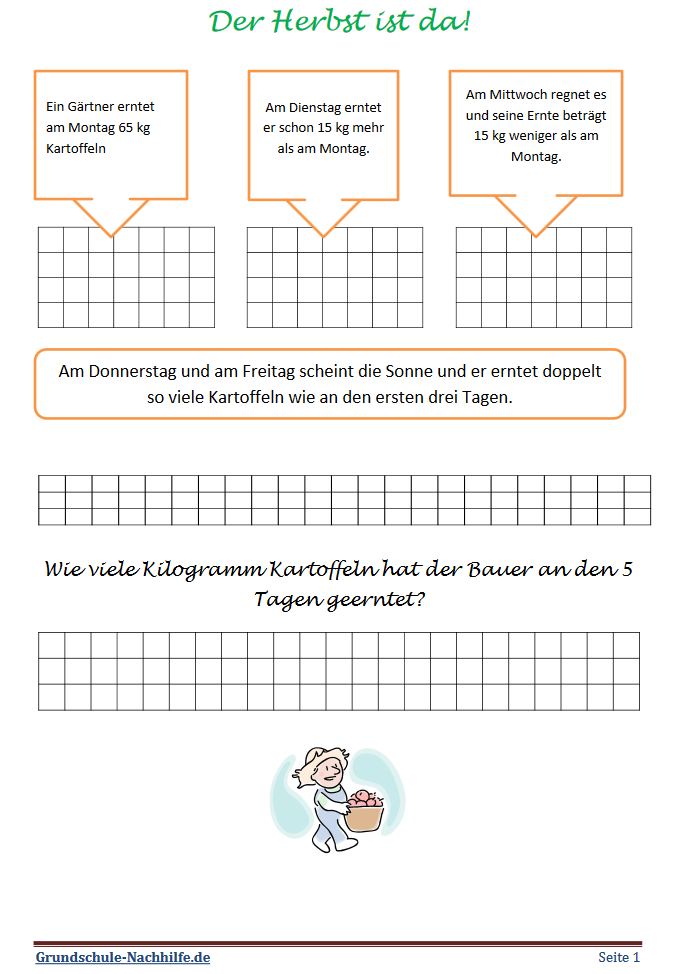 Arbeitsblatt Mathe Klasse 3,4 Komplexe Sachaufgabe zum Thema „Ernte“