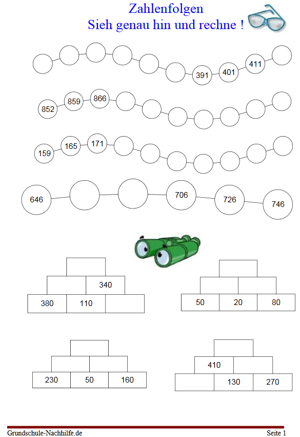 Download: Arbeitsblatt 140 Mathe Klasse 3 Zahlenfolgen- Zahlenmauernauern.pdf (12,21 kb)